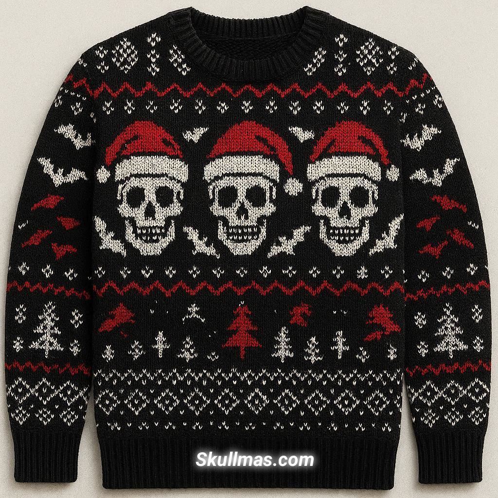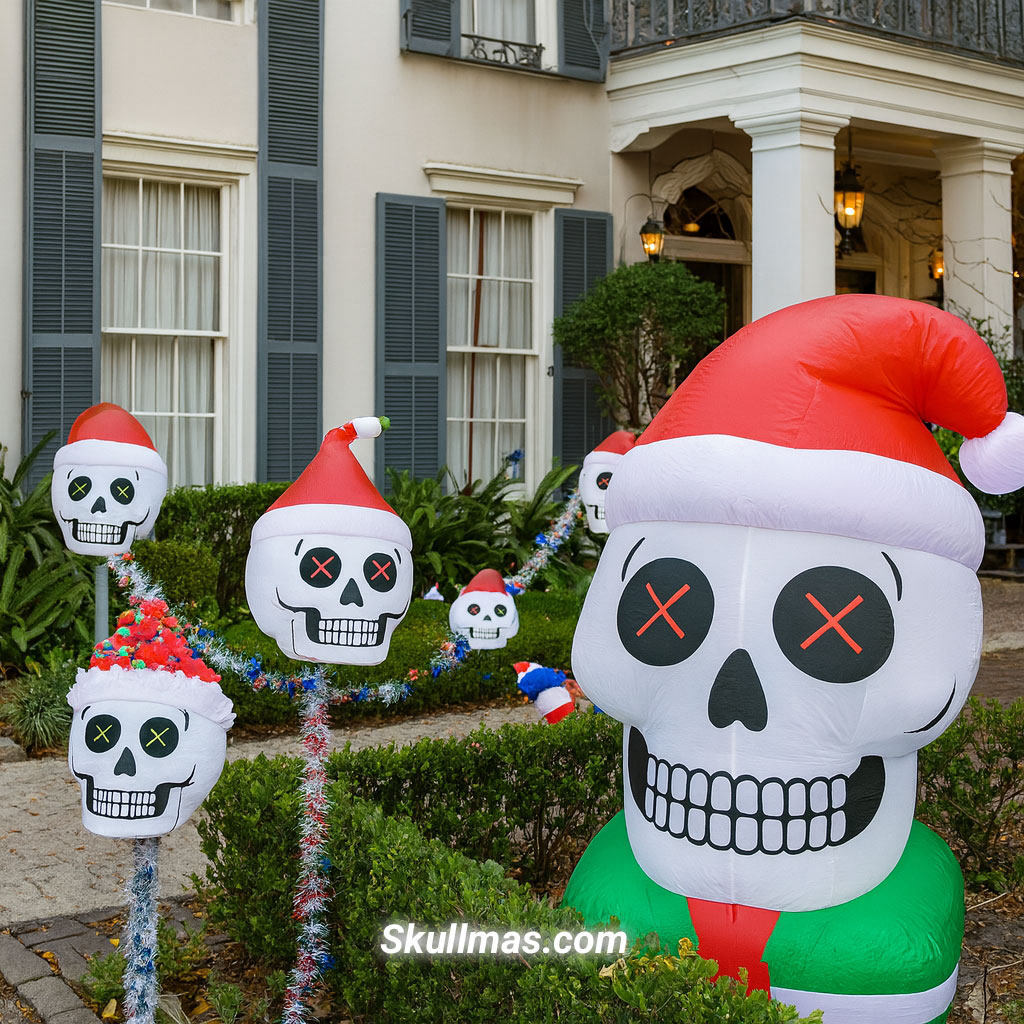 Instead of classic reindeer and snowmen, Skullmas brings Santa skulls, spooky inflatables, and light-up bone displays to the front lawn, turning your yard into a festive gothic wonderland.